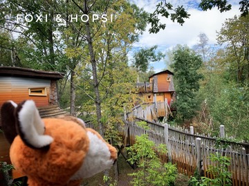 Am September 2020 waren de Foxi an den Hopsi um Escher Gaalgebierg beim Maisy vum Kuelebierg op Besuch. D'Maisy war leider net do, mee hat huet deenen zwee säi Bamhaus fir eng Nuecht iwwerlooss. Déi 3 Bamhaiser sti matten am Déierepark a si fir 4-6 Leit geduecht. Et gëtt e Buedzëmmer, 2-3 Schlofzëmmer, en Iesszëmmer mat enger mini Kichen an 1-2 Terrassen. Dem Maisy säin Haus ass wonnerschéin dekoréiert, immens propper an d'Better hu bequem Matrassen. 2 Parkplazen (+/- 150 m ewech) pro Haus stinn och zur Verfügung a mat engem Badge kann een zu all Moment mam Auto eraus an era fueren. Gratis Déierefudder steet natierlech och prett. Moies hunn de Foxi an de Hopsi Kaffi op dem Maisy senger Terrasse gedronk. Bréidercher, Croissant'en a wat ee soss nach brauch, kritt een an engem Kuerf an d'Haus bruecht.